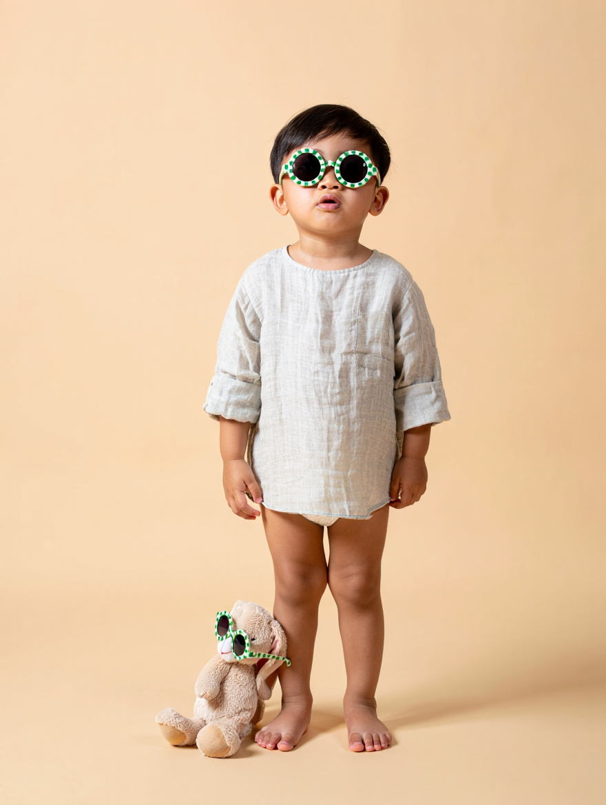 Des lunettes solaires pensées pour les yeux sensibles des enfants (de 3 à 7 ans)  — légères, résistantes et stylées pour toutes leurs aventures.